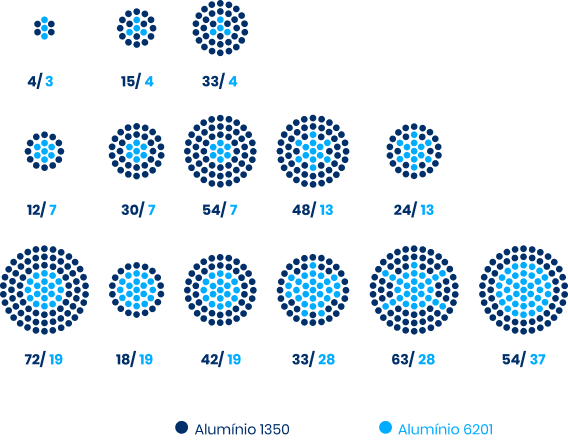 Características construtivas Condutor: lumínio liga 1350 com reforço de liga 6201.